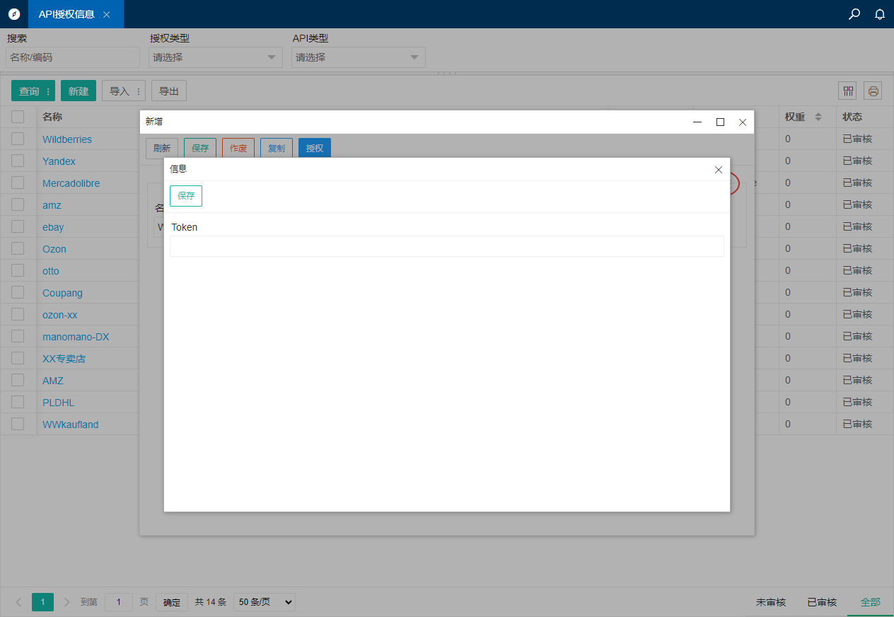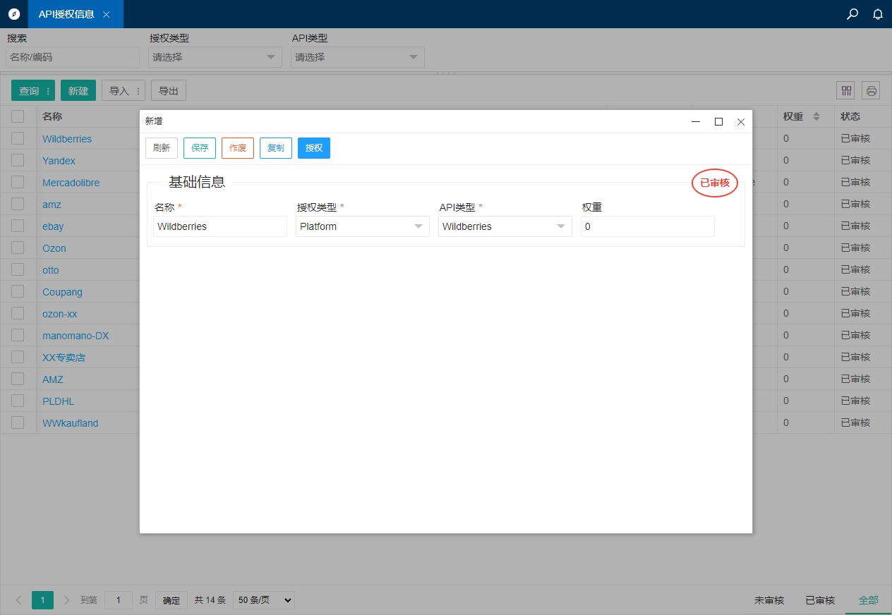 2.填写店铺名称,授权类型选择Platform,API类型选Wildberries后点击保存